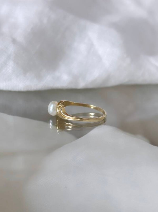 The Vintage pearl ring is made of 9 carat gold inlaid with a beautiful pearl.