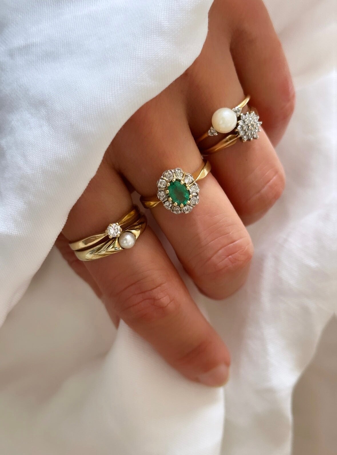 Such a dream! She is made of 18ct gold inlaid with a bright green emerald gemstone surrounded by sparkling Diamonds!!