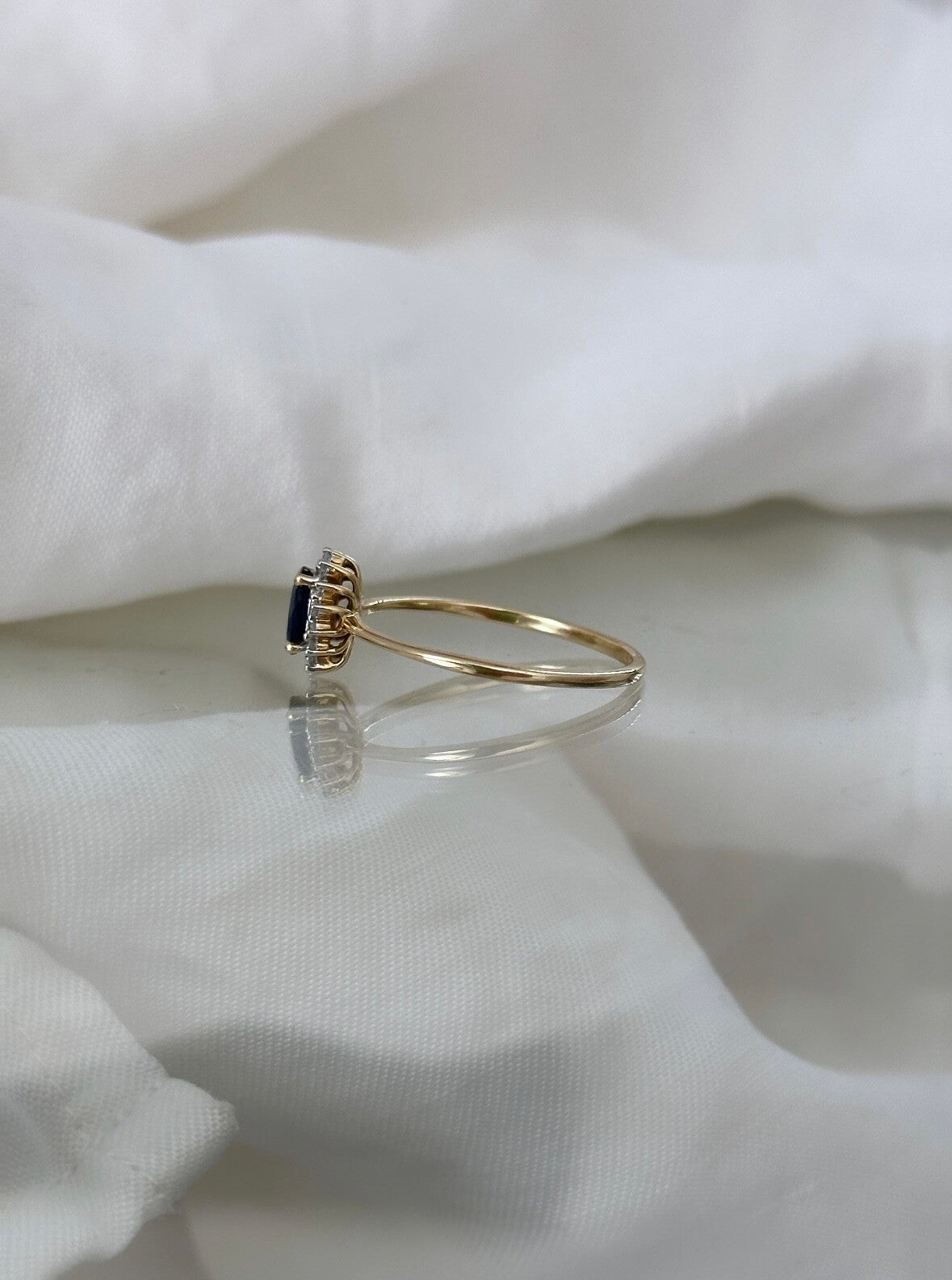 The Sapphire & Diamond Ring is just incredible! She is made of 14 carat gold inlaid with a beautiful Sapphire gemstone surrounded by sparkling Diamonds.