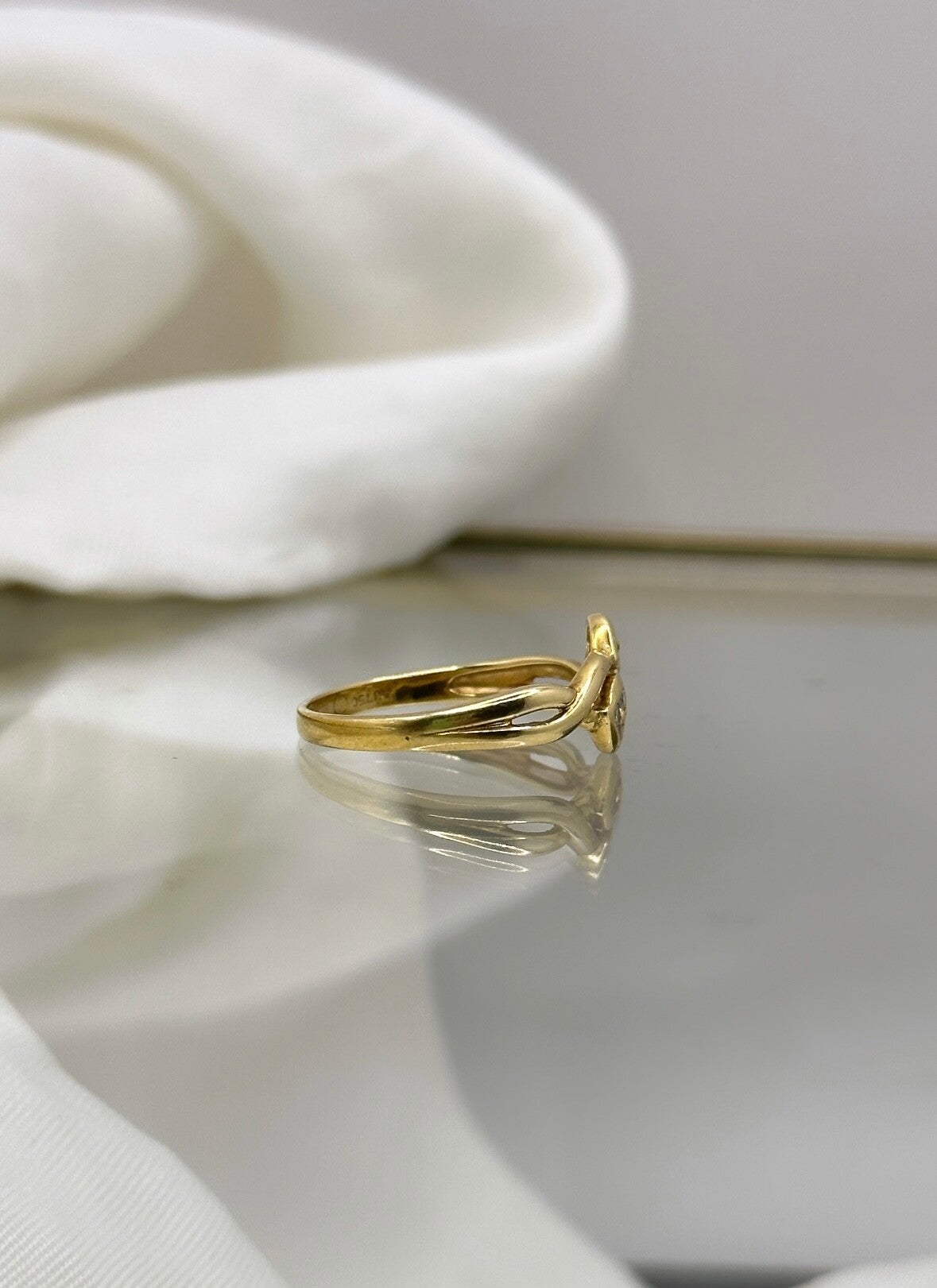 Elegant 18-carat gold band ring adorned with sparkling diamonds and cute hearts. A symbol of love.