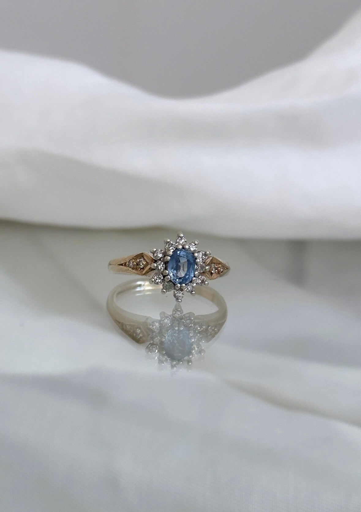 The lovely 9ct Cornflower Sapphire & Diamond Ring.
