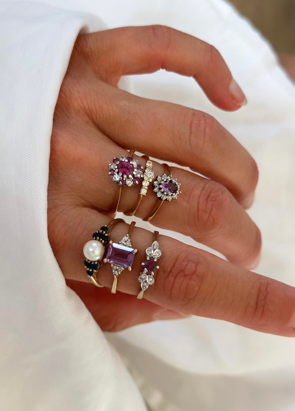 A beautiful ring of 9 carat Vintage gold inlaid with a purpe Amethyst surrounded by sparkling diamonds. A forever treasure.