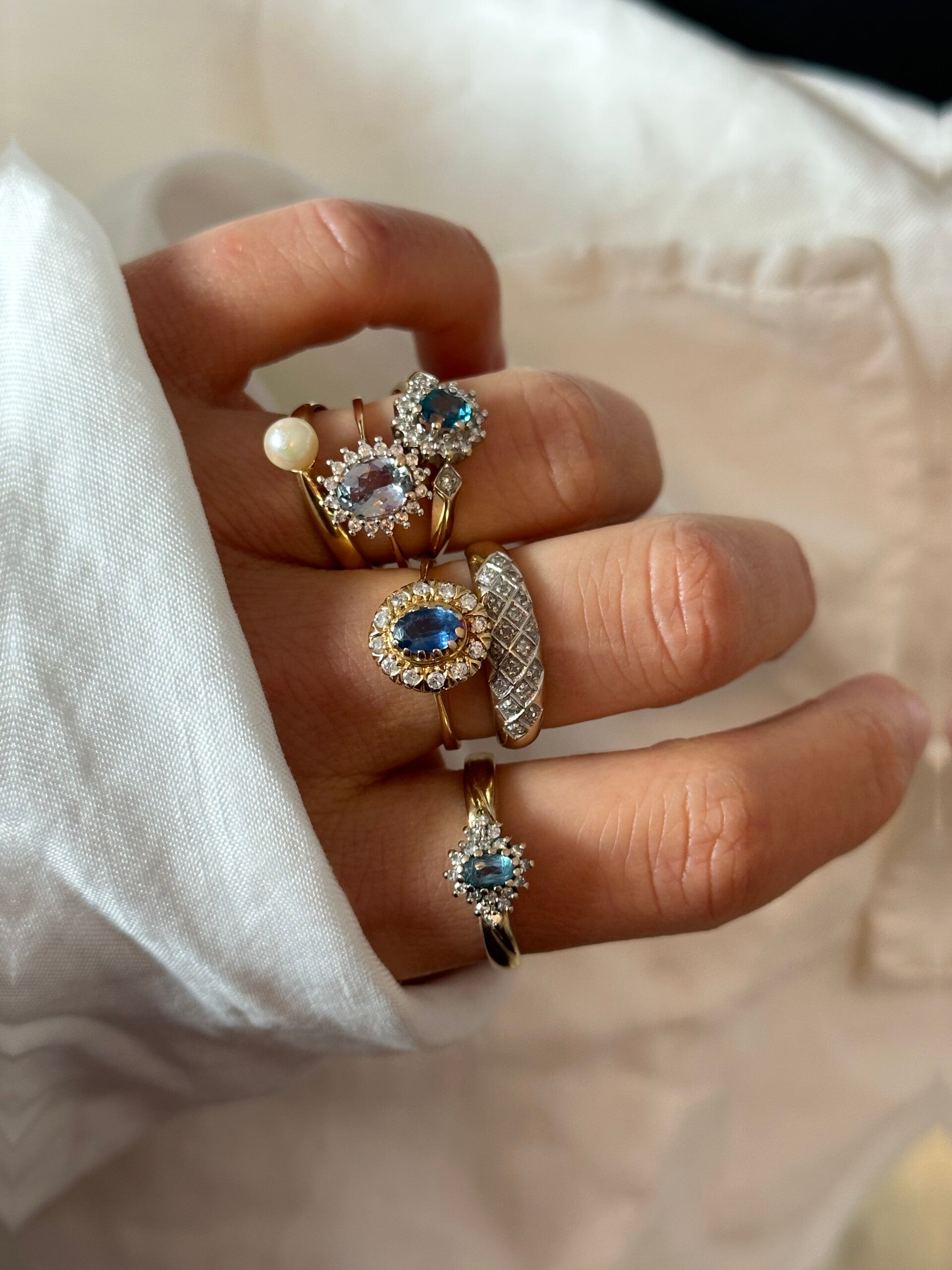 Such a dream! This ring is made of 18ct gold inlaid with a bright blue Topaz surrounded by beautiful sparkling diamonds. We are in love!