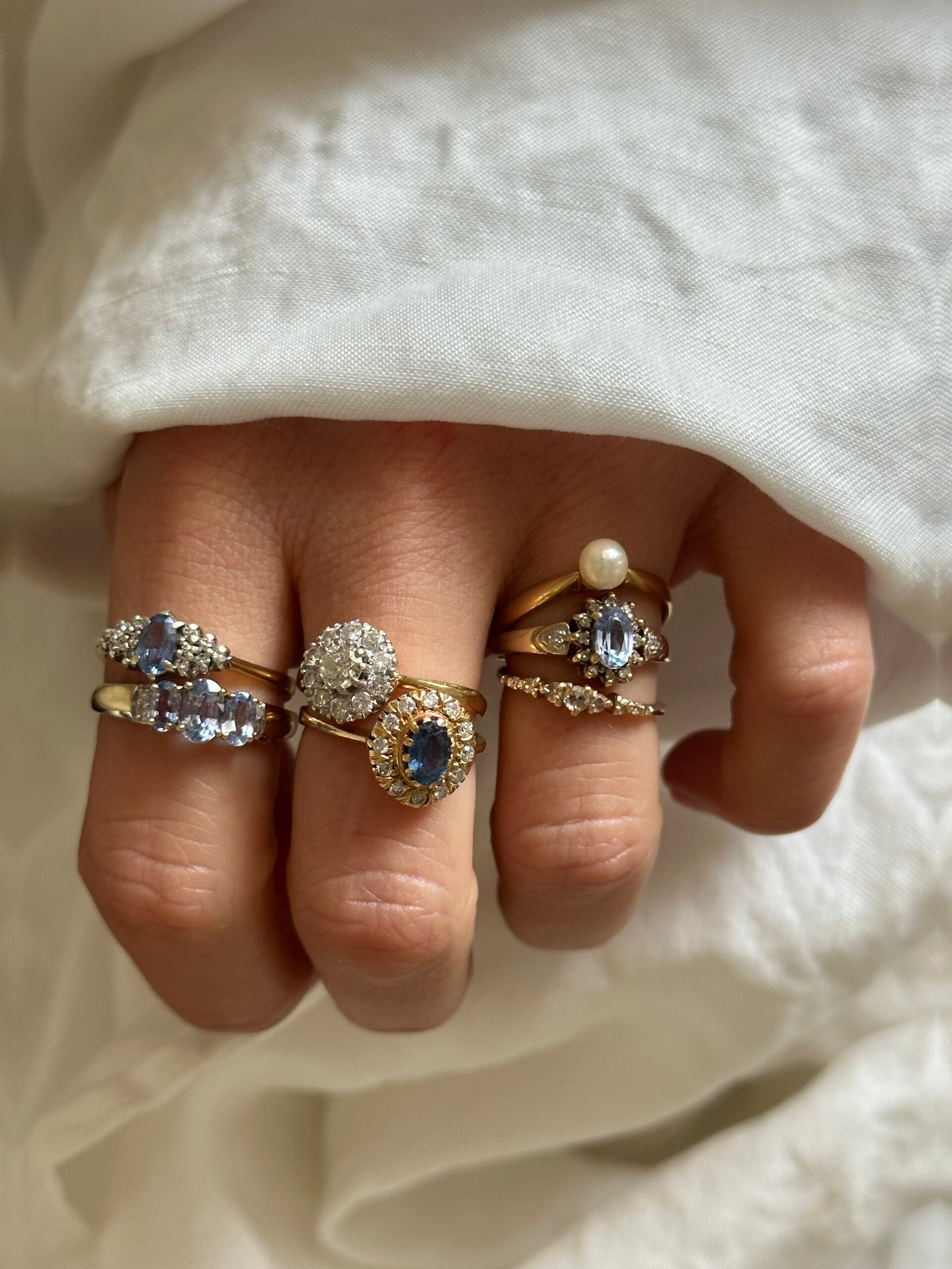 Fall in love with this beautiful ring, set in gold and featuring a cornflower Sapphire gemstone embraced by Diamonds. It is a treasure to love forever.