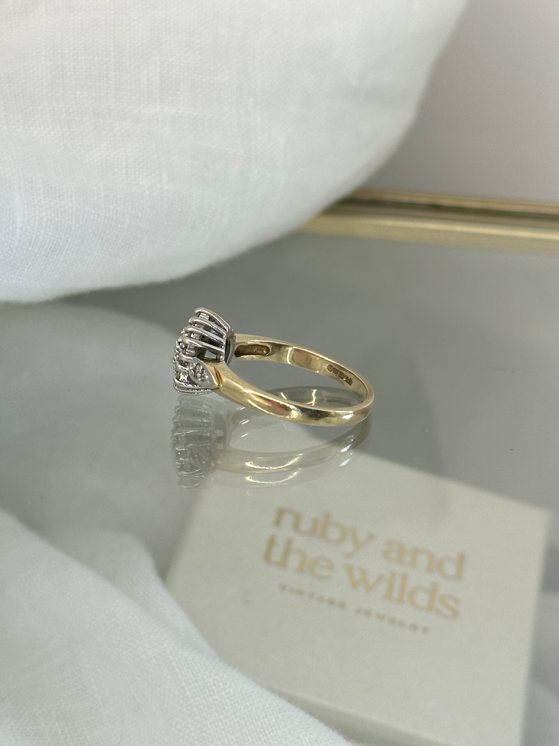 Cherish your love and dreams with this vintage 9 carat gold ring embellished with sparkling diamonds. A treasure to cherish forever!